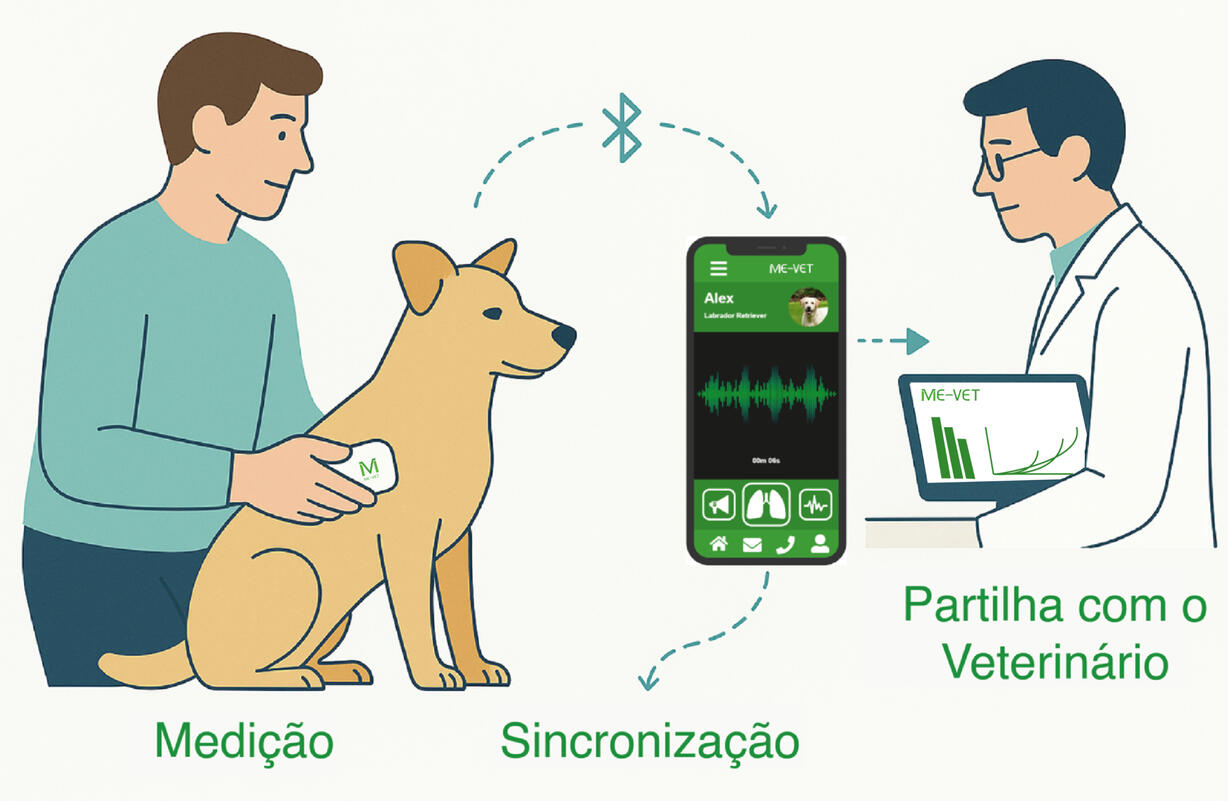 O Me-Vet é um dispositivo portátil que permite recolher vários dados clínicos remotamente e partilhá-los com o veterinário.